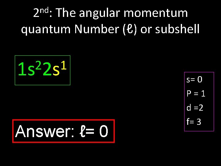 The angular momentum quantum number, i, . State the four quantum numbers and the possible values they may have. State the four quantum numbers, then explain the possible values they may have and what they. Name the orbitals described by the following . Which quantum number indicates the .
