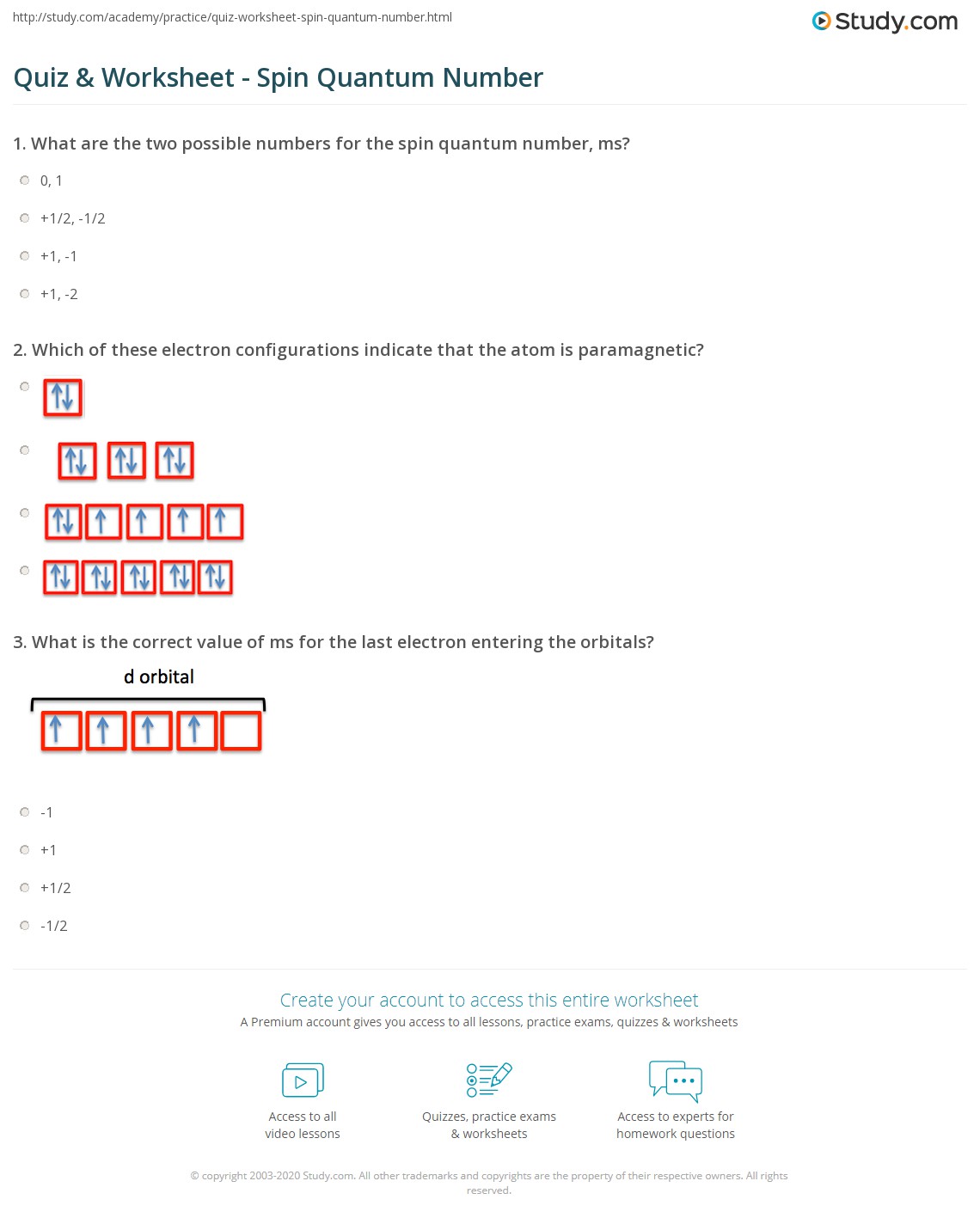 State the four quantum numbers and the possible values they may have quantum number worksheet. This worksheet gives your students practice writing electron configurations and practice diagramming electron orbitals.